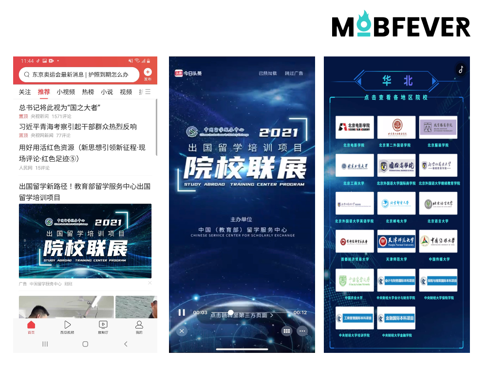 By launching In-feed ad and Takeover at the same time, Takeover brought first impression to the audience and audience could see the In-feed ad again when they scroll to see the content in Toutiao. This strategy enhanced the brand awareness and it was easy for the audience to access the website to find the overseas study information.
